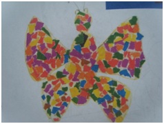 "Рваная" мозаика Ход работы 1. Берём цветную бумагу и разрываем её на мелкие кусочки. 2. Клеем ПВА покрываем силуэт будущей мозаики по трафарету.. 3. Приклеиваем разноцветные кусочки на силуэт. 4. Можно сделать «резную» мозаику. Она выполняется точно так же, только кусочки цветной бумаги не разрываются, а нарезаются ножницами. Волшебница Перловка